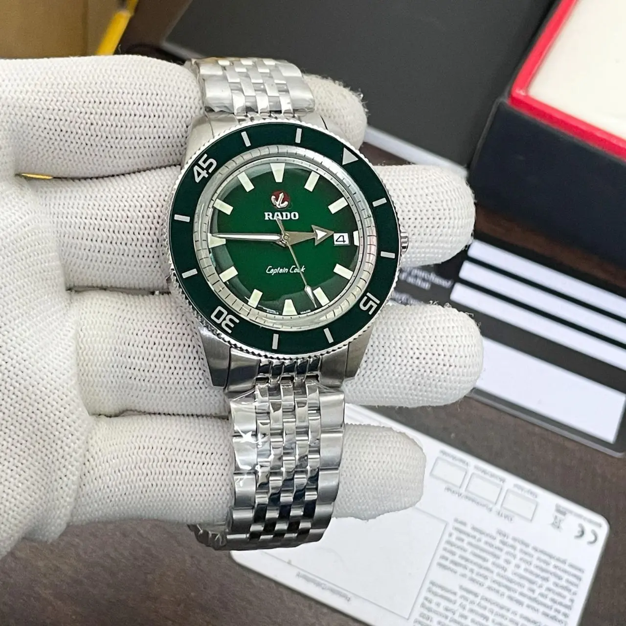 42mm Original steel case, Green Tachymeter Ceramic Finish Bezel & Steel Rado Crown