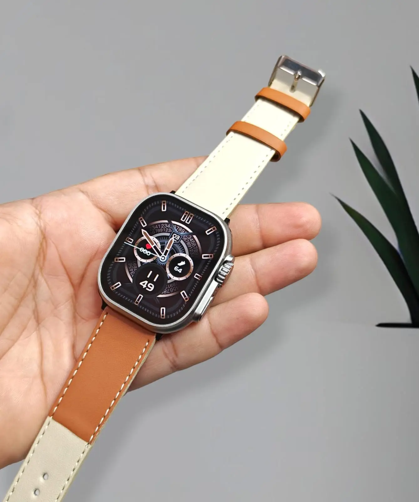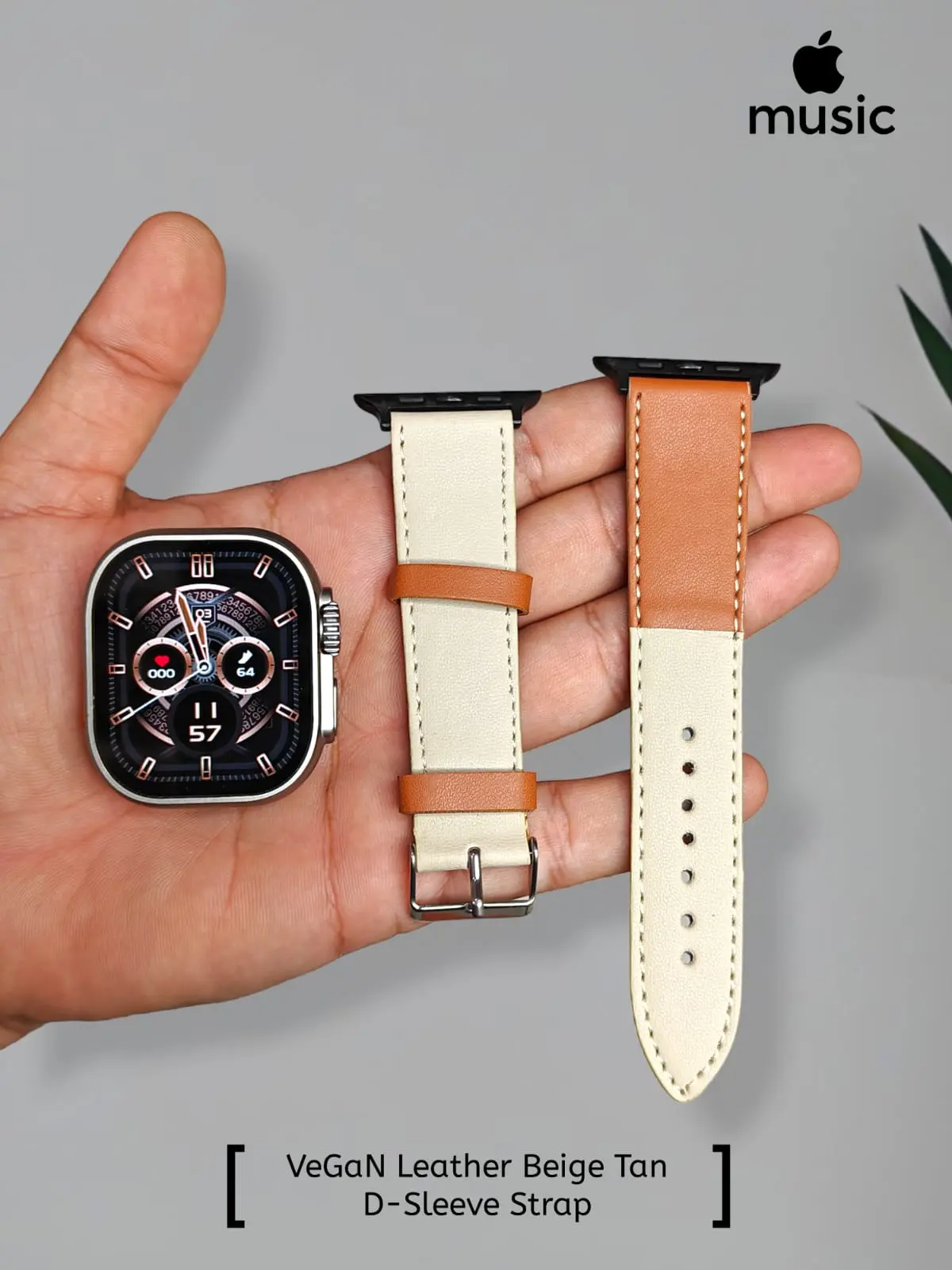 1️⃣ Vegan Beige Tan D-Sleeve Leather Strap